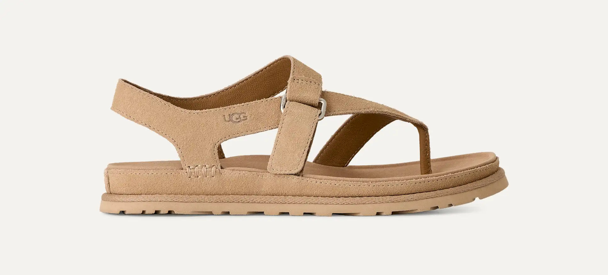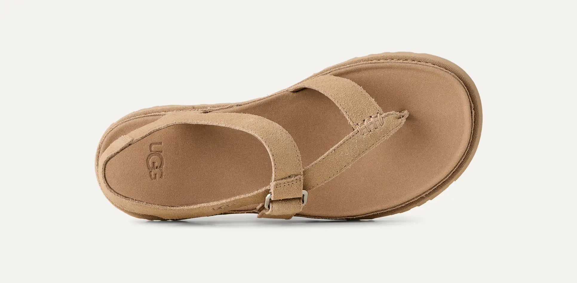 Set the tone for sunny days with our GoldenGaze Toe Post. It has all the comfort of our sister Goldenstar, including a feather-light sugarcane outsole and a soft microfiber footbed for easy all-day wear, along with premium details like leather lining and a genuine suede upper and toe post. An adjustable ankle strap gives that just-right fit. This is your new go-to for dressing up and serving serious style.