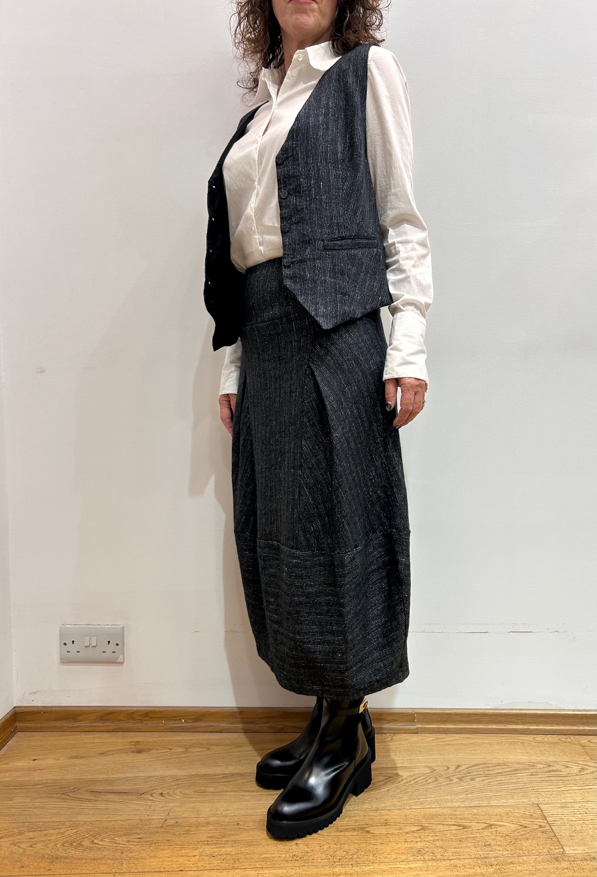 Cotton/linen/wool blend with a hint of stretch in the ballonn shape panelled skirt