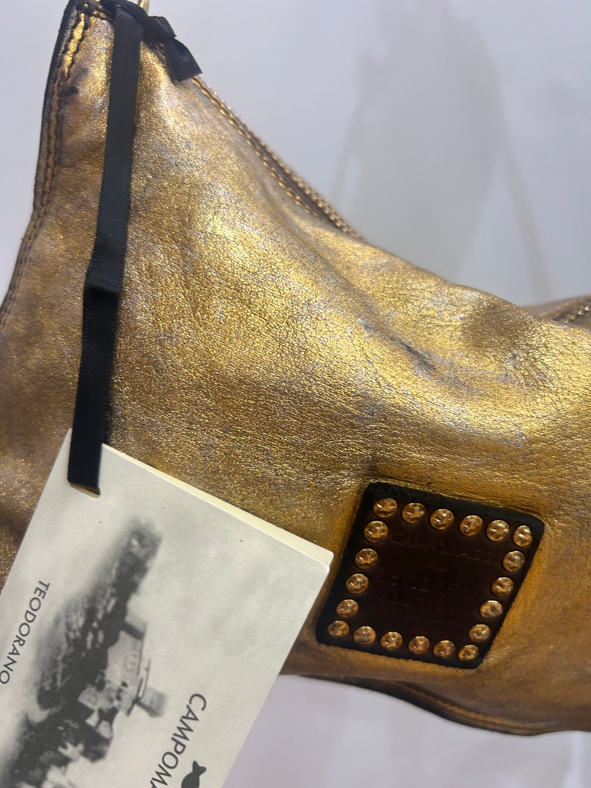 Double compartment small xbody bag in a silver/gold finish with 2 straps - long xbody and a shorter shoulder.