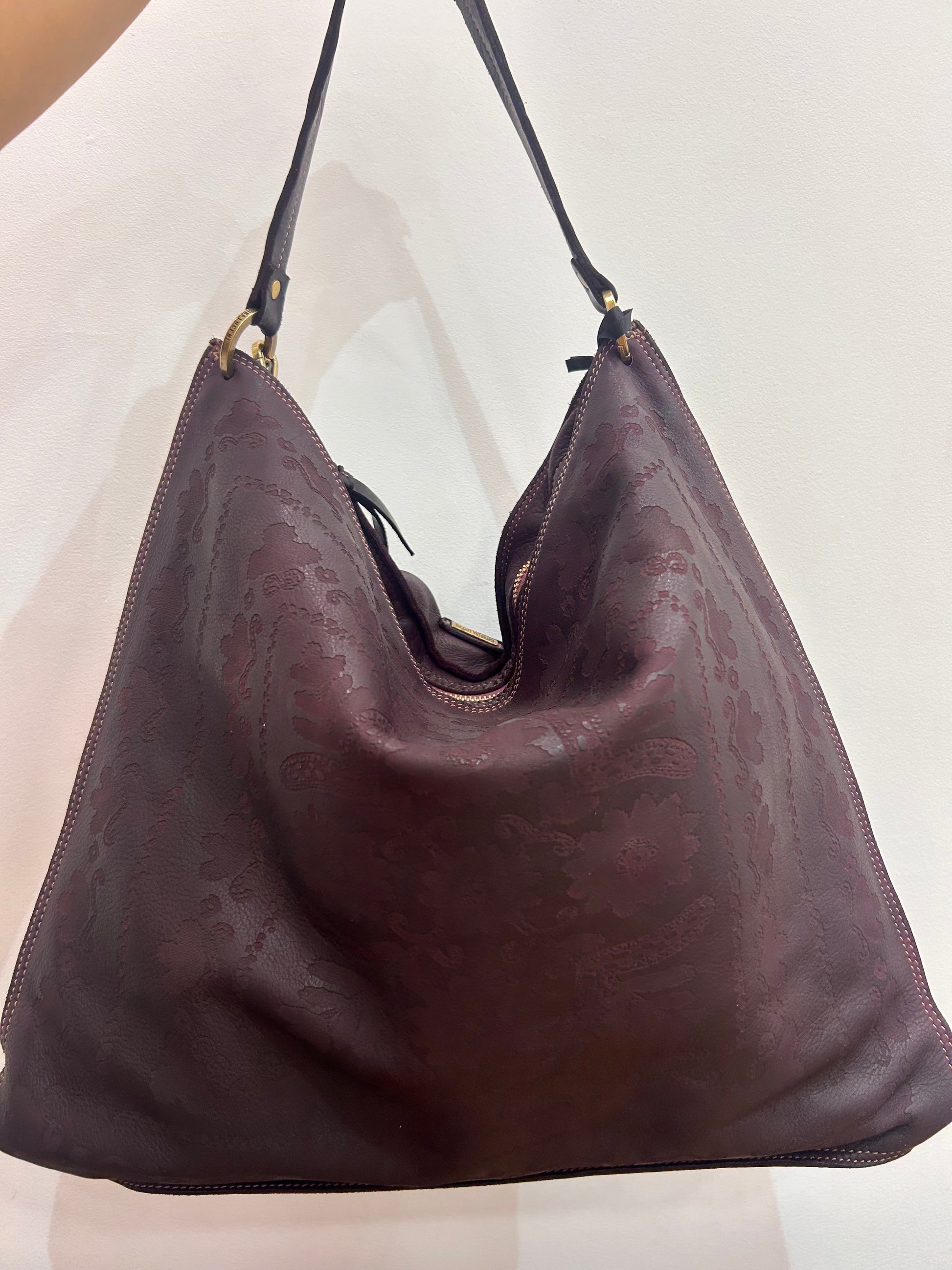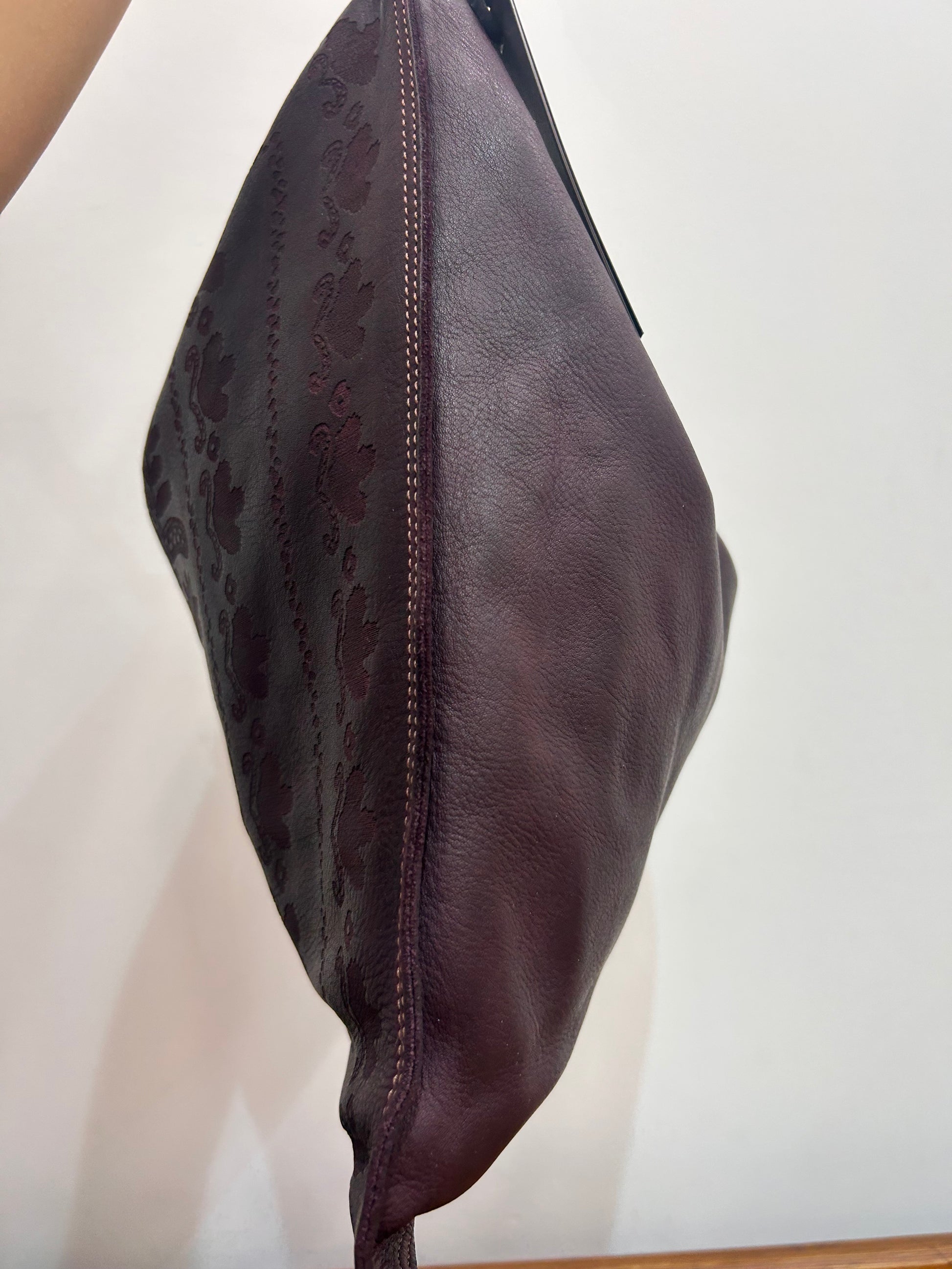 Lace effect floral design laser cut into the leather. Soft square shape with a shorter shoulder and longer strap